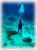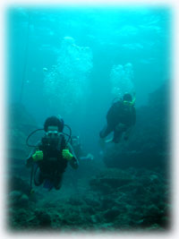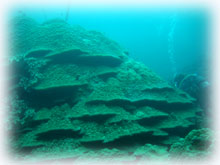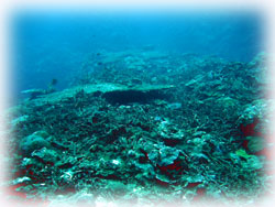 アンカー打ちに入ったとき、ホワイトチップがいそうな予感がしたので探したけど、今日は逢えませんでした・・。大抵そんなときは、ハマサンゴの根の下で寝ていたりします。そんなこんなで、気がつけば・・いつのまにやら、沢山泳ぎ回ってました・・・すんません。ココはケーブとそしてサンゴの群生のポイントです。ソフトコーラルは相変わらず凄いけど、あんなに素晴らしかったハードコーラル系がいつのまにやら全滅・・・・ああ、ショック。今年の1月潜ったときは、枝サンゴテーブルサンゴ見事なだらけだったのに・・・・。。