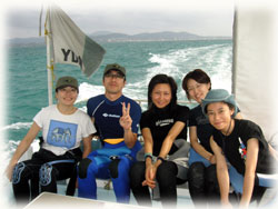 こんな波のある日でも、皆さん船酔いもなく元気っっ!ランチもモリモリ食べて頂けましたっ。しかしながら、去年の体験の時、船に酔ってヘロヘロになってしまったニシバヤシサンの姿はナンだったのか・・・。この6日間、いちども船に酔うことがなかったニシバヤシさん・・・・。きけば・・・・去年は体験前日、呑みすぎてた〜との新事実発覚・・二日酔いだったのかぁ・・・・。と言うことで、この数日間禁酒していたらしい・・・。さぁ、今日は解禁ですからね〜。シャワー後、ログの後は・・みんなで宴会です。。。
