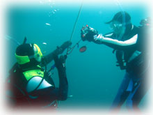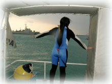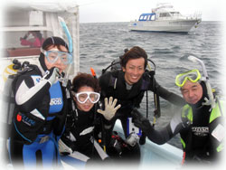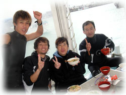 さて、ココでみんな寒さにめげるかと思いきや・・ 元気過ぎる・・(;-_-;) 。 ナリタ君は、午後からナビゲーションの講習。 そして、ササキさんヨシダさん・オクムラさんは、3ダイブ目行きたいですっっ。行きたい〜?? ポイントが限定されているにもかかわらず、潜りたいモード。