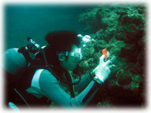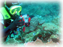 瑠璃色が本当に美しい、ルリホシスズメダイの幼魚。 でも、撮るのは・・粘りが必要。 オクムラさんと二人で粘り勝ち。