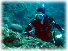 今日は、朝目が覚めたら・・・部屋の中でもビュービューという風の音が聞こえ・・・嫌な予感・・。気温もナントきのうより8℃も低くなり19℃・・・ゲー・・たったの19℃っっ!!でも、今日は久しぶりのニギヤカ大人数です。きのう、見事ダイバーとなられたフクミさんが今日からファンダイブ。そして同じく昨日潜って頂いたカワバタさんも同じくファンにご参加。。そして今日ご到着のオクムラさん。石垣島はすでに何度も来られているたくましすぎるベテランダイバーさんです。そして、コンナお天気なのに、明るく元気なササキさんとヨシダさん。そして今日からアドバンス講習をうけられるナリタくん、←ナント学生さん!。 。。今日は講習もあるので、ちょびひげリュウ君にヘルプスタッフとして来てもらいました〜。 典型的な八重山の冬気候に突入してしまったので北風が強く、行けるポイントは・・・・・サクラグチ。午前中、ジックリマッタリとココで潜りました。。