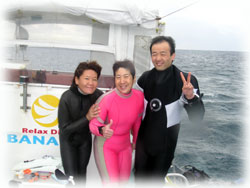 あしたは・・・波がおさまってくれるのかな・・・ぁ・・。今日のフクミさん、オクムラさん、そして講習のナリタ君は明日もダイビングで〜すっ・・。ハレテオクレ。