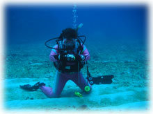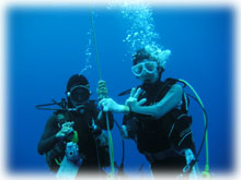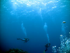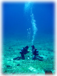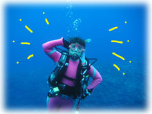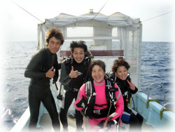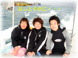 今日も・・・寒い・・。気温は、18℃。20℃を切ると、とんでもなく寒く感じます。今日も海は荒れてますが、元気に出港です。あまりに気温が低いので、今日は2本潜ってシャワーを浴びてから食事に行く予定にしました。。。今日は、みんな最終日。ホームページを早速見てくれた友達から「おしとやかにしなさいっ」とメールが届いたオクムラさん・・今日は、おしとやかバージョンです。。そして、12/1から始まったオープンの講習以降毎日ダイビング・・のフクミさんも、今日が最終日となっしまいました。そしてそして、昨日からアドバンス講習のナリタ君。寒そうですが今日でアドバンスダイバーになりまっす。。