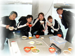 サムイけど、冬は水がホントきれい。ブルーの世界に浸れます。しかも今は、気温より水温の方が遙かに高いので水の中の方があたたかく平和・・・。初ファンダイブのスズキさんも、とても落ち着いて潜れました〜。カメラに夢中だったな・・。アフターマラソンな2人も、酷使した足がつることもなくエキジット。。さすが若いだけあります・・・(^_^;)。2本潜って帰港。今日は、みなさん朝が早かったので、ログ付けは明日にまわしてゆっくり過ごしてもらいます。明日も、同じメンバーで楽しく潜りましょ〜。。