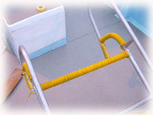 ハシゴの足がかかる部分は、ロープを巻いて滑らないようにしました。