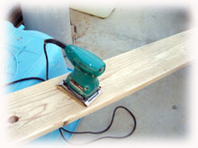 晴れてきたので、やっと棚板のヤスリがけ・・。