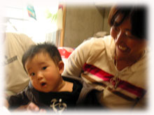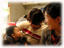 そして午後、友達のみんなと3時のお茶。 リカちゃん、そしてスナガワサンご夫妻と ほっぺがぶくぶくでカワユイユウイチロウ君。 いつも仲良し、ハッチとクミサン夫妻です。 今日も朝から海で波に乗ってきたハッチは、いくら寒い日でも半袖半パン。 今、お気に入りCDのJack Johnsonとは友達と聞いてびっくり〜っ。 クミサンは5月に個展をひかえ、制作に忙しい日々。 リカチャンはツワリもどうやら終息を迎えたらしく、オメデトウ?。 この後、明石まではるばる三味線大会にでかけるそうです。 スナガワさんご夫妻も、お忙しい中ドウモアリガトでした〜。 楽しいひとときでした。