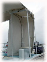 最近、ウチノヒトは早く起きて一人で船での作業を進めているけど、 今日は雨に降られて帰ってきた。 それでも、リメイクしていた トイレのテントが今日つきました。 エンジンのメンテも一通り終了し、 後は、船を下ろして、ゲストを待つばかりです。