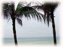 目の前の竹富島が、雨でかすんでます・・。 なんだか島はこのところ大荒れのお天気。 。