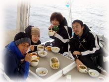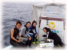 みんなが潜っている間、耳の調子が悪かったヒロミさんとワタシは、船の上で黒糖入り紅茶を飲みつつユンタク三昧でした〜。