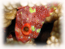 ダンゴオコゼやオオアカホシサンゴガニの卵持ち、などもココの住人です。。