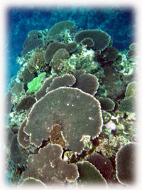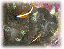 若いだけあって順応性抜群。そのままスッ・・・と潜れました。ただ事前に、もしかしたら体質上耳がぬけにくいかもしれないけど挑戦したい・・・・と言う話だったアカネさんだけは、残念ながら片耳だけドウシテモ抜けなくて、上手に潜って行けたモノの・・水深2mどまりになりました。潜りたくても、カラダが大事・・と言うことで、アカネさんはワタシと二人で器材を置いて、シュノーケル探検の旅にでました。オオアカホシサンゴガニ・アオリイカ、カスリフサカサゴ、ツノダシの群れ、ハゲブダイのムレ、テングカワハギのペア、アヤコショウダイのムレ、サザナミヤッコのペア、・・・などなど数え切れないくらいのサカナとサンゴを見ました。潜っている3人が見ていたクマノミ・セジロクマノミ・ハマクマノミ、タコもをしっかり水面から観察出来ました。。