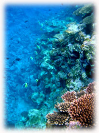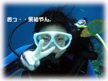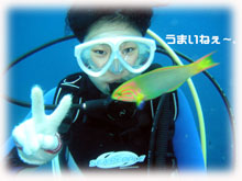 一方、すんなり潜れたカオリさん、マリコさんは、上記のサカナはモチロンのこと、各種クマノミや小さなエビなどをタクサン見れたようです。余裕で、そして水の中に住みたい・・・と思ったほど、とても楽しかったそうです。・・・・でも住めないよっ。。