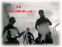 雑誌なんかで見るのと同じ・・・」とサンゴや魚に夢中でした。ホントにいつも石垣島のこの自然の美しさに、毎度毎度ワタシもココロの中ですごーぃ・・と思ってしまいます。上からも、潜ってる他のダイバーさんやクマノミなどがハッキリ見えました。しばらくシュノーケリングをして・・・一旦休憩。その後、いよいよ潜るのです。今日は水温の方が圧倒的に暖かいので、水から出た瞬間・・・・さぶぅぅぅぅぅぅ〜(>_<)