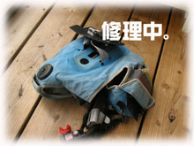 コレはマズイ・・・と、ハーネスからはずして修繕。他の縫い目部分からもじわじわエアー漏れしてたりするので、そろそろ新しいのが欲しいけど・・・・・しばらくは我慢です。