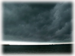 今朝キッチンでランチの支度をしていたら・・・部屋がなんだかドンドン暗くなる・・・いきなり夜が来たみたい・・・・。海側の空をのぞいてみたら・・・スゴイ空になっていた・・。