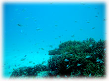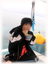 でも、水の中は平和ソノモノ・・。。 2本潜り終えて、 静かな浜島でランチタイムです。