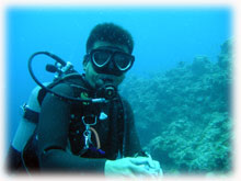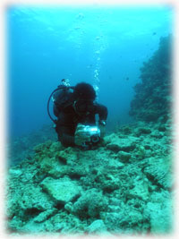 カイさんは、オキナワや奄美の色んな島々でガイドをご経験され、今の座間味島に至るそうです。その島々の中には石垣島も・・・っ。でも石垣島は、今回なんと10数年ぶりだそうで、変わった街をみられて堂おもわれたのでしょう・・・・・。そしてガイド歴は・・・ナント20年にもなるそうです。いゃはゃ・・尊敬。ワタシがダイビングを始めた頃にはもうすでにガイドだった人なんだ・・・。今回は、奥さんにいってらっしゃーい・・と見送られてこの石垣に来られました。奥様は・・なんとBANANAの日記をずーっと以前から見て頂いているそうで・・・いゃゃゃ・・うれしいなぁ・・・♪