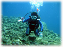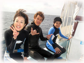 石垣島は初めてだそうです。リョウタくんとモモちゃんは、去年サイパンでダイバーになりました。お母さんは、潜ったこと無いそうです。でも先週はご家族でスキーやスノーボードをしていらっしゃったとか・・。「子供のウチに、色んなコトをさせてやりたい・・」とフキコさん。ナント恵まれているお子さん達だことっ!! |