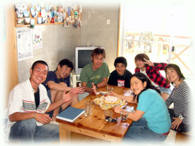 帰港して、みんなシャワーを浴びてからログ付けデース。そして・・・・ワタシもすっかり忘れていたけれど・・・明日はウチノヒトの誕生日っ。サトコチャンがなんとなんと・・バースデーケーキを作ってきてくれましたっっ・・いゃぁ・・スミマセン。どうもありがとう♪いゃほんと有り難うございます(^_^;)。モモちゃん・リョウタ君のお母さんフキコさんも加わって、み〜んなでお祝いして頂きました。。