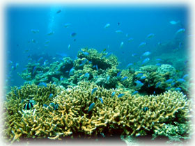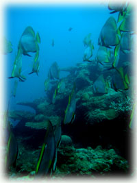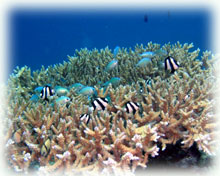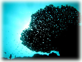 デバスズメダイの幼魚の群れ