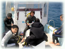 昨日に引きつづき、中学生ダイバーのリョウタ君、そして高校生ダイバーのモモちゃん。そして、関西から石垣島には何度も来られているコンタニさん。