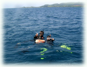 今日も、海陸共に楽しい1日でしたぁぁ・・!! 高校生ダイバーのモモちゃんは、ニモ(カクレクマノミ)が見たかったけど、耳が抜けなくってホント残念でした。デモ、シュノーケリングで楽しめたし、次回の目標が出来たし、是非また遊びにおいでね。リョウタ君は、中学生とはいえホントにたくましいダイバーでした。コレカラもダイビング続けていってね〜。コンタニさんは、石垣島移住を4年後に計画中。。おいしーーーいたこ焼き屋さんを開店する予定・・待ち遠しいです。。リュウタローさん、ランチ、タクサン食べて頂き有り難うございました。またゴハン、食べにいらして下さい?(←ん・・・・?)サーフィンも是非ご一緒しましょぉねぇ〜(←ウチは何屋だ・・・・?)。サトコちゃん、今日はどうも有り難う。ワタシは日常に追われ、すっかり明日の誕生日のこと忘れてました・・・。