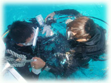 お昼の休憩のユンタクの後は・・・・いよいよ体験ダイブの方も潜ります。マッシーと一緒に練習をしてから入りましょう。。