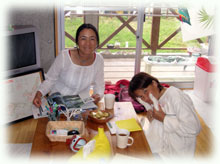 今日は、昨日の蒸し暑さはドコへやら、少し肌寒い朝になりました。気温がまだ安定しないようです。早く暑い日が続いて欲しい・・・。 本日はお休みを頂いてました。昨夜は、ウチノヒトと映画「ニライカナイからの手紙」を観にいってから、トンカツを食べて帰ってきて・・・たまには夜ゆっくりと過ごそう・・・と思いつつ、パソコンに向かったら最後・・・結局日が変わるまで座ってた・・・。今年は、自分たちの心身の為にも、仕事モードとゆったりリラックスモードをしっかりとメリハリつけないと・・と思っているのに、ナカナカ実行出来ません・・。いかん・・。仕事の時は、いい意味でアクティブモード、極端に言えば少し気が張った戦闘態勢に近いカラダと心・・・。去年はいつもそんなまま深夜にベットに倒れ込み、気が付くとまた次の朝・・・・という毎日でした。反省したのにな・・。 そのせいか、今日は気の抜けた朝だからか、目眩がして1日なんとなく何も出来なかったのでした。目眩なんて余り経験がないので、そのうちスグ治るだろーと思っていたのですが・・コレガナカナカ。一方、 ウチノヒトは朝から港へ行って船のメンテなど。毎日海へ出る船は、いつも万全でなければイケマセン。そのためには、例えお休みであっても、常にメンテや手入れは欠かせないのです。。