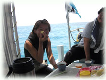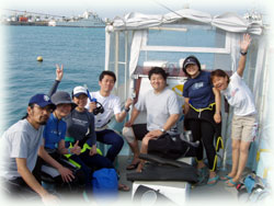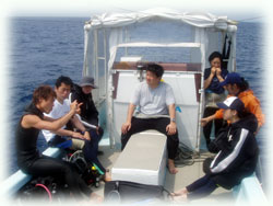 今日もにぎやかな1日でした・・・。昨日までのツチヤさんご夫妻、エンドウさんご夫妻、そして地元ナースサトコちゃん、そしてそして今日からファンダイブとアドバンス講習の数日間のムトウさんデス。もう出航前から、記念撮影会っ!