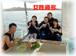 合計4枚以上が乱舞してくれたそうです・・・・すごい・・・みんなの日頃の行いがとてもいいんでしょーぉ・・。みんな大満足っっっ。よかったねー。マンタで、胸一杯になったところで・・・遅いランチです。