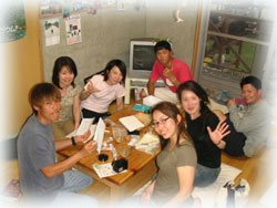 うへー(X_X)。ムシムシ蒸し暑い・・・。朝から、なんだかサウナにいるみたいな島です。今日も、去年のゲストさんとの再会がウレシイ・・にぎやかなメンバーが登場でっすっっ。