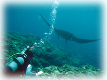 お二人は数日前お電話で「マンタって見に行けますか??」とお申し込みの時に質問されたので、その時海況が良ければ前日に行く予定を立ててたので、「ごめんなさーい・・この日は、行かない可能性が高いです・・ごめんなさい・・どうします??」と言って一旦電話を切って考えて頂きました。再度のお電話を頂き「今の時期は確率もあまりだし、それでもいいのでお願いします」とお申し込みを頂いたのでした。・・ソレが、・・・昨日は海況が今ひとつで行けなかったので、今日は急遽マンタの予定になったのです。ラッキーなお二人です。。