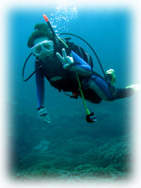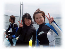 シュノーケリングの後は、 ナオコさんも体験で潜りまーす。