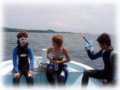 体験ダイブ組は、まずはシュノーケルを・・。 トモは、ブリーフィングの仕方を勉強。 。