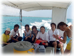 今日もいいお天気です。まるで梅雨が明けたかのよう・・・。今日のゲストさん達のほとんどが、みんな関西からの直行便で来られるので、今日は、到着後みんなでゴハンを食べに行って午後から出航です。ホントにジリジリと暑く、夏の日差し。。