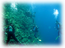 お天気が今ひとつハッキリしない今日・・・だんだん回復してきて晴れ間もタップリになりました。。出航前のリクエストミーティングで、行き先は黒島に決定〜。ワタシとウチノヒトの2チームに分かれてのんびり潜りマース。。。。