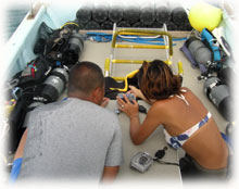 イトーさんは、去年も7月に来て下さり、黒島ブルーにいたく感激。今日はワイドレンズとマクロに強いデジカメひっさげて登場です。。