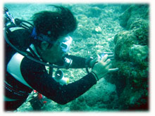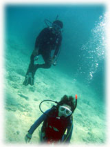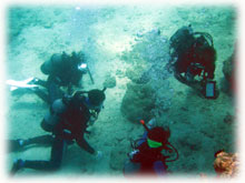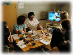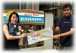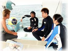 そんな今日のゲストサンは・・・・3日前に引きつづき、イトウさん。そして、5月以来2ヶ月毎に島にせっせと通って潜っているヒロミさん。ヒロミさんは、耳がやはりぬけにくい体質で、地元ではせっせと耳鼻科にも通っているそうです。。。そして、にぎやかなご夫婦・・ハヤシタクミさん、タケコさんご夫妻。富山県からお越しで、超天然の奥様タケコさんがしゃべるたんびに一同爆笑・・・タケコさん、デジカメに初挑戦です。。そして、カナさん・ナオミさんの二人組。。カナさんは「中性浮力に自信がありますか?」の「全くとれませんっっ」と即答でした・・。