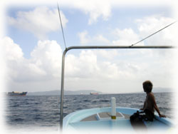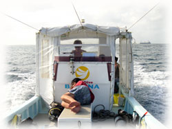 今日から海・・・でも、今日までの海・・。台風5号は確実に石垣島直撃コースをたどってきました・・・。大きく強い台風の直撃は久しぶり・・・。今回のは、真剣に恐いです・・。海は、今日は午前中までは波もまだそんでもないので、午前中に2ダイブ潜り、港でのランチタイムになりました。。