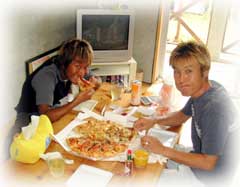 ワタシは、お店で事務仕事。やってもやってもやることがザックザクと湧いてくるのはナゼ・・・・?? そして港から帰ってきた二人も事務作業。お昼のランチタイムにはピザっっ〜。ジャンキーな昼ご飯です。3人オナカパンパンで、眠気と戦いながら、午後の作業です。