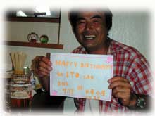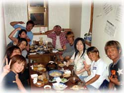 そして、きのう 潜ったゲストさん達と、そして、昨夜島に来てしまったヨーコさん。今日は朝から全便欠航っとなってしまい、台風の最中の島にみーーーんな取り残されてしまいました・・・・。朝一便で島脱出を企てたイトーさんも撃沈です。 そして、朝から一本の電話・・・・。昨日の爆笑ゲストタケコさんからでした。「もう乗れなかったんですよぉー。今空港でのんでますぅ〜」。。イトーサンと出逢い、3人で午前中からビールを飲みまくっていたようでした。 。 そして、なんと・・・本日はイトーさんなのバースデーだと言うことが発覚・・。昨日は林さんの旦那さんタクミさんがバースデー、そして明日はヨーコさんがバースデーダイブの予定なのでしたが・・・・。。 勿論、今夜は合同バースデー宴会です・・・・・そして、今夜半すぎ、石垣島に台風接近です・・・。。