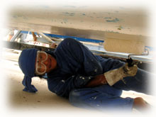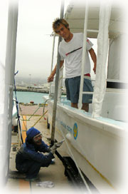 今日は、もともとお休みでしたが、台風で否応なく休みになったため、休みは返上で陸でオシゴトです。。。 ウチノヒトとトモは、港でBANANA号のロープ解き、テントはり、船底塗料塗りなど・・・船を下ろす準備です。