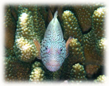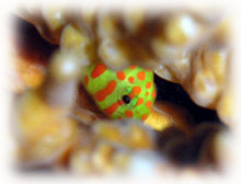 ブリーフィングで出した問題。カクレクマノミの二つのバージョンの違いは?の問いに、 チカコさんのお答えは残念ながら不正解でしたので、ログ付けの時詳しくお教えしました。。そして今日サンゴの中のニシキテグリが姿を見せてくれてました・・しかし・・デカっ。サトコちゃんが撮ったショット・・うーーん・・でかすぎて?頭が切れてる・・おしい。