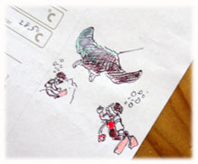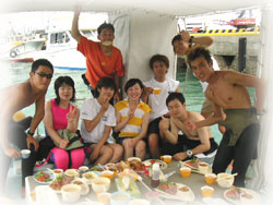 にぎやかーな、1日でしたっっ。アユミサンは明日は波照間へいかれるそうです。お天気も良さそうだし、楽しんできて下さいねー。そして残りのメンバーは、明日も引きつづき一緒にもぐりまーすっっ。またまたにぎやかしい1日になりそーぉ・・・。今頃、このメンバーはニギヤカに呑んでいることでしょう。(いいなー・・・合流したいナー・・23時現在・・まだまだシゴト中のワタシタチ・・・・)