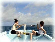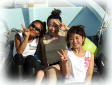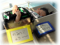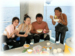 帰りの船上で・・。 無事、初ファンダイブの2日間を終えて、 ホッ・・・・としているスヤスヤ・・のカイさん。 ・・・が、 呑みつぶれていることに・・・。 今日のゲストは・・ こういうメンバーでした・・・。。