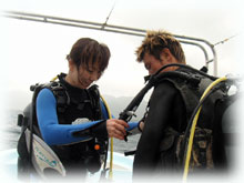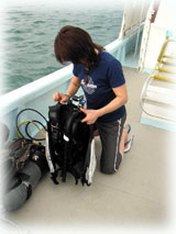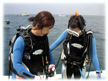 | 昨日、学科と限定講習を終え、とてもスピーディーに講習をこなしているヒロミさん。今日から海洋講習がはじまりまーす。なんでもスムーズなので、早く終わりそうです。。そして、娘さんのトシコさんは、きのうに引き続きのファンダイブに〜。今日はゆっくり講習をして頂くために、キノシタさん親子の貸し切り〜に致しました。。。