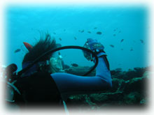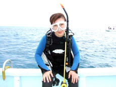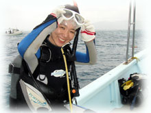 聞けば、お二人は、今年3月BANANAに来て頂いた座間味の海さんの所にゴールデンウィーク遊びに行ったそう〜・・・。そこで、トシコさんはダイビング、お母さんはシュノーケリング。でも、そこで、ワタシもダイバーになれるのではないか・・と思いはじめ、今回の講習となったわけでした・・。不思議と、ゲストサンとの会話に最近よく海サンの名前が登場する〜オモシロイ縁がつながっていまーす。。今度は親子ダイバーとして、座間味にも潜りに行けますねっっ。楽しみ楽しみ。あと少しでダイバー母さんです。 お母さん。 Photo by トシコさん。 | ||||||||||||||||||||||||||||||||||||||||||||||||||||
