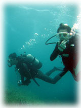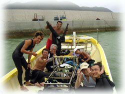 昔々のワタシタチとの出逢いや、ビギナーだった頃の話・・・。オオクボさん&ホシさんとのオツキアイは、6年前ウチノヒトの勤めていたお店のツアーに参加されたのが発端だったのですが、そのツアーに参加した理由を聞いてビックリっ。今やダイブマスターのオオクボさんだけど、ビギナーだった当時は、ダイビングへの緊張のあまり、当日予約していた別のショップをキャンセルしてしまったとのことでした・・・・。そして急遽ウチノヒトの働いていたお店のパナリツアーへ・・。オオクボサンと出逢って、、そしてそのつながりでウエムラさんやブラックなメンバーさんたちと出会って・・・・。。よくよく考えれば、そのキャンセルがなかったらワタシタチは、このステキなメンバーの方々と出逢ってなかったかもしれないんだ・・と思うと、ヒトの縁ってホントに不思議だナーと思います。