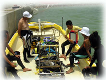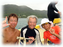 今日のゲストサンは、去年石垣や東京で何度もお会いしているけど、一緒に潜るのは去年の7月以来のホシさん。そしてホシさんのお父さんホシパパさんの登場です(ナント72歳の現役ダイバーサンです)。ホシパパサンとご一緒するのは、たしか・・・2年降りくらいの再会です。そして今朝到着のウエムラさんとユミコさん。ウエムラサンは、6月の大騒ぎブック軍団ツアー以来、そしてユミコさんは、6月の末以来の石垣島です。お2人は、メデタク7/7に入籍されましたっっ!!本当におめでとうございますっっ。。。。